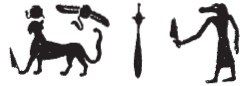 - The spelling of this participle is notable, Anubis playing a tambourine, iconography discussed by Ritner and Von Lieven. This apparently derives from s(h)r, to “strike a drum” (>>refs>>), and relates to the phrase sr-biAy.t, “to foretell wonders”, used in a musical sense (ref. to H.G. Fischer). In his litany, Heka is similarly “lord of wonders” and “he who foretells what will come to pass (sr ḫpr)” (Esna III, 242, 18 (19)-(20); cf. also Esna)