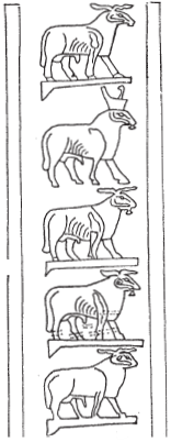 ; similarly in Esna III, 378, 12 and 14. This suggests the ram might derive its value from a toponym sḥty (var. sḥḏ) near Herakleopolis, often written with a ram’s head: Wb IV, 221, 9; Yoyotte 1963, pp. 101-106.↩︎As noted in column 1, the two rams with the Geb crown write tȝ, due to that god’s association with the earth.↩︎